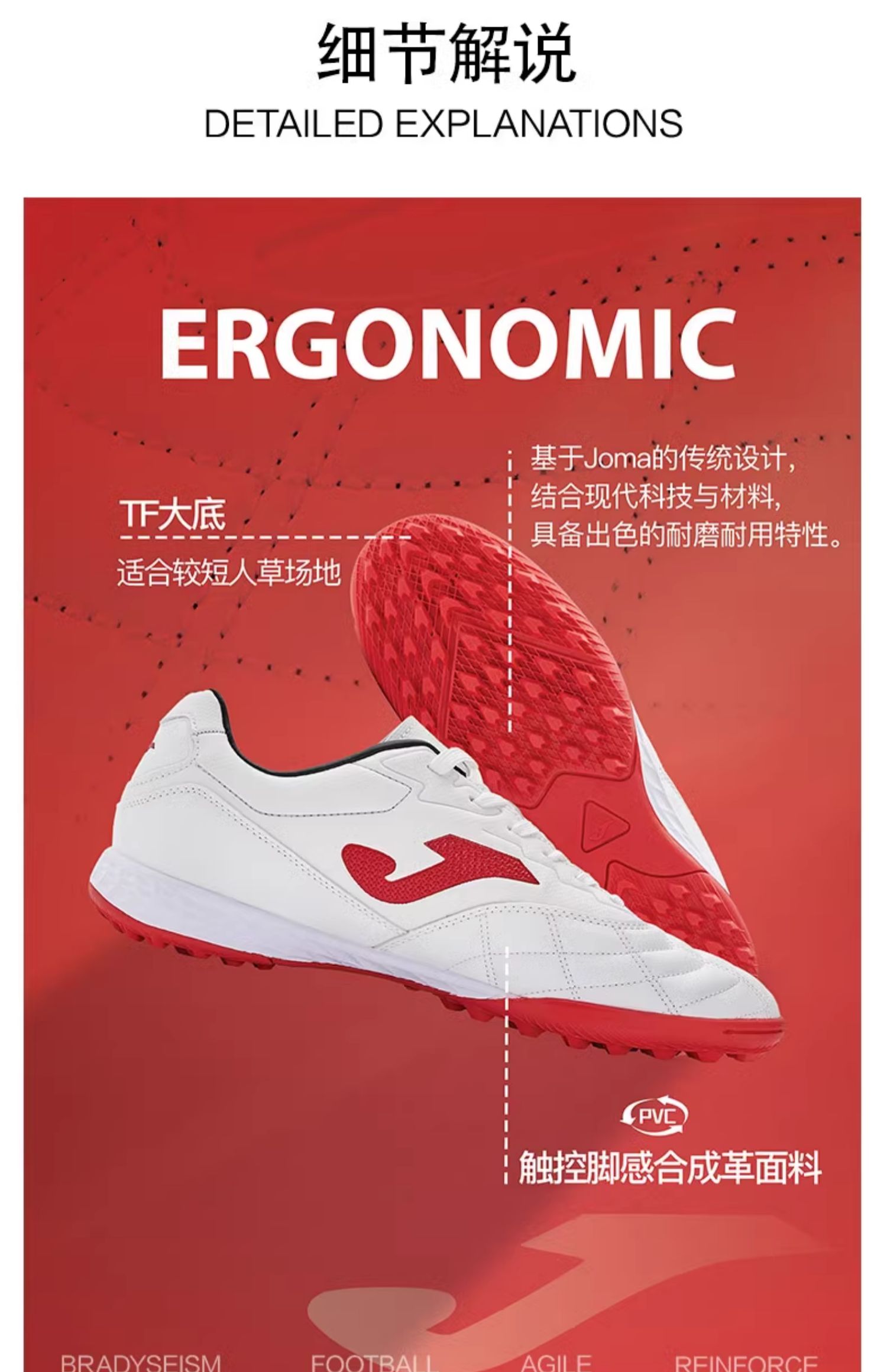 经典儿童足球鞋款型,基于Joma的传统设计,结合现代科技与材料,