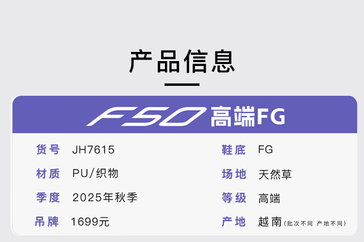 阿迪达斯F50 ELITE高端FG长钉足球鞋成人男 JH7615