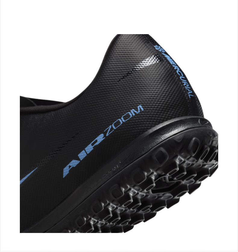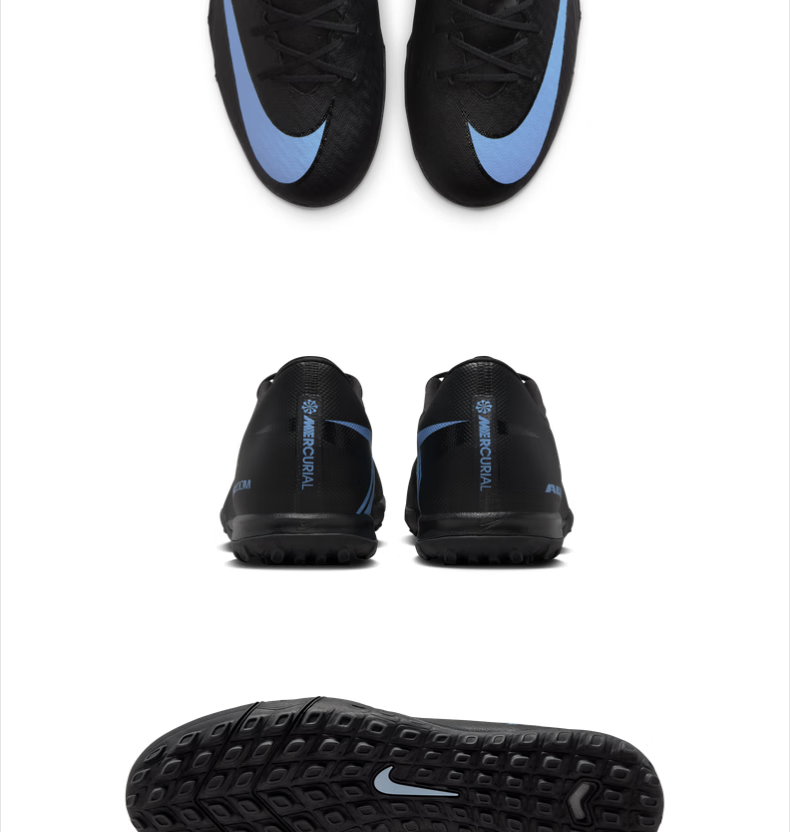 TF 碎钉大底:密集小钉+前掌鱼鳍状排列,人造草、塑胶、硬地通吃,急停不滑步。