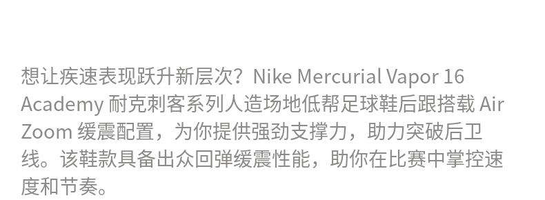 3/4 掌 Air Zoom:跳步落地瞬间明显回弹,突破更省力。