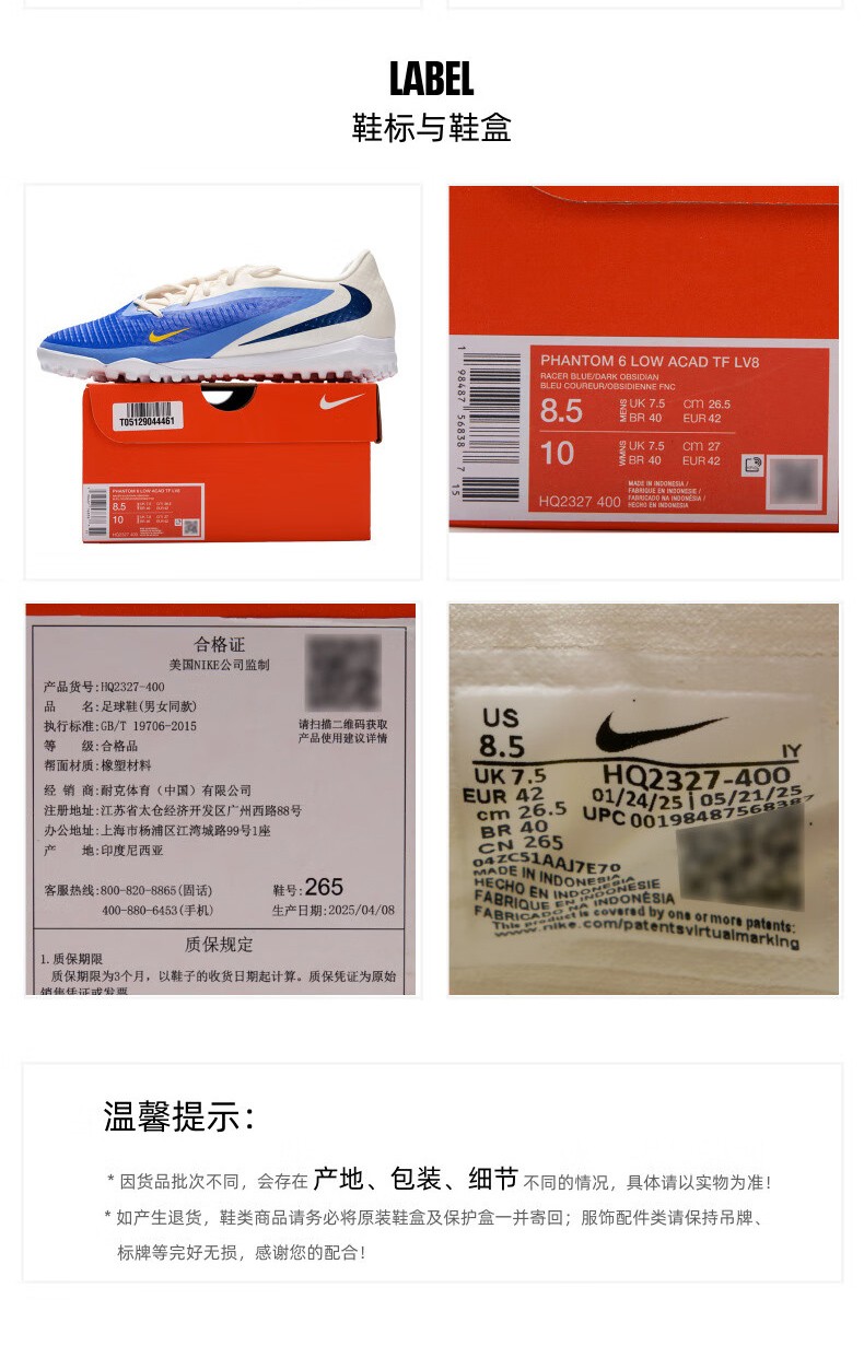 耐克Phantom6 Low Academy男子TF碎钉足球鞋