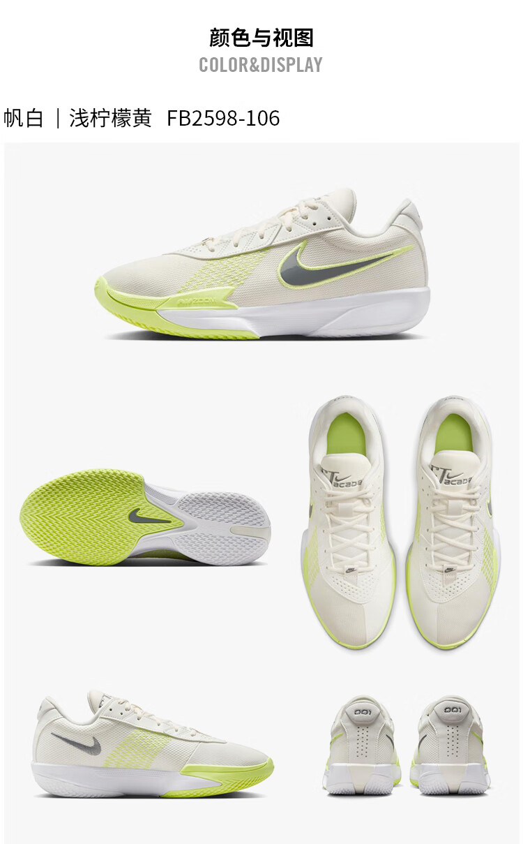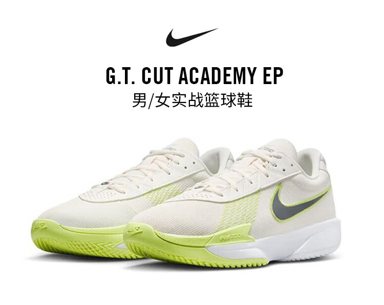 NIKE耐克男篮球鞋ZOOM G.T. CUT ACADEMY运动鞋 FB2598-106白黄 包裹性强 回弹缓震