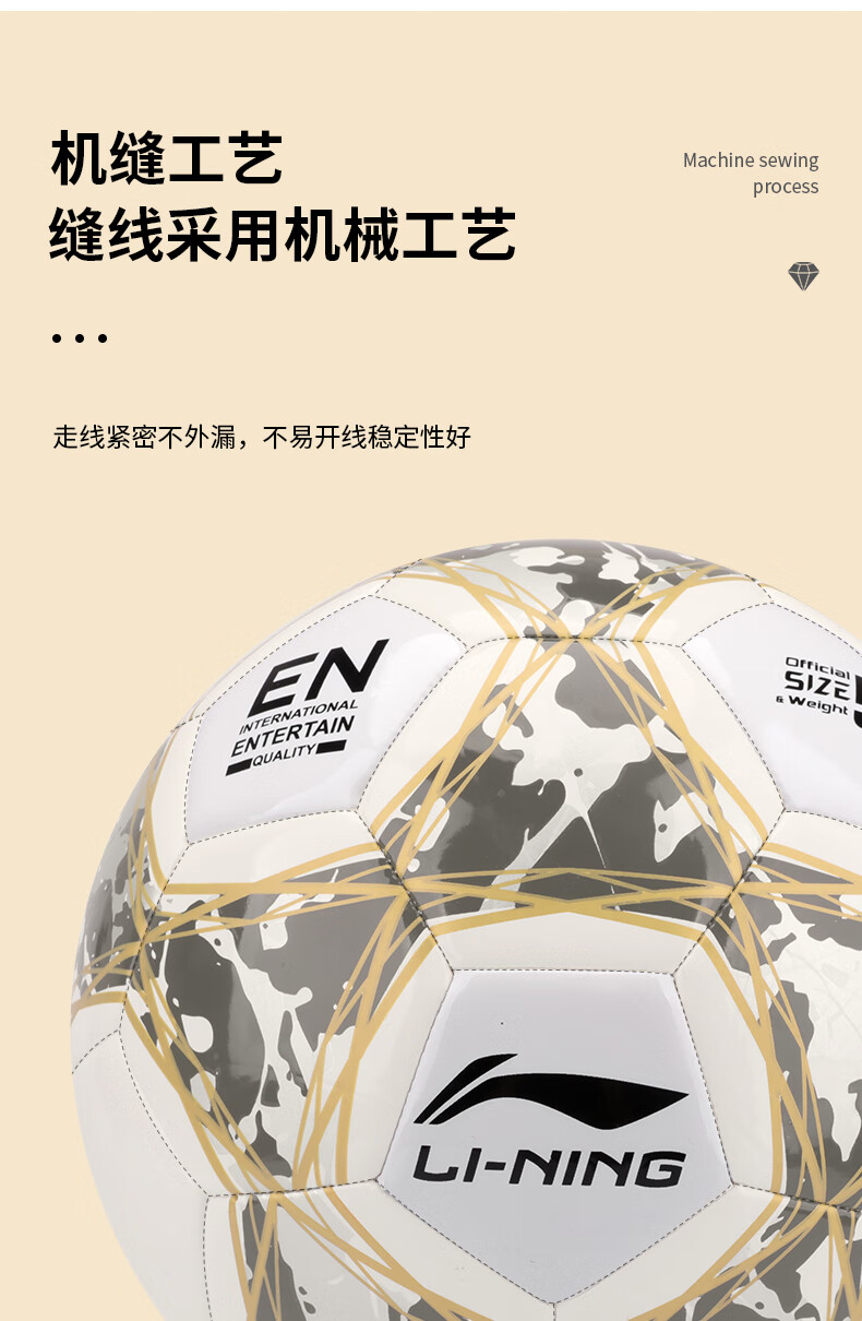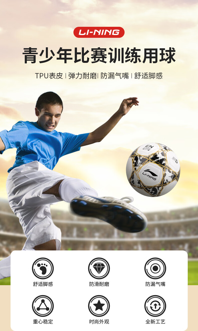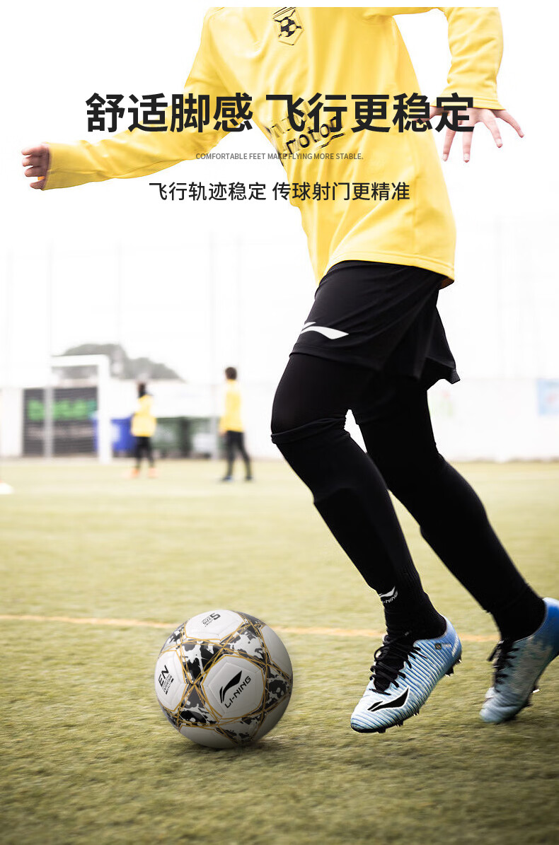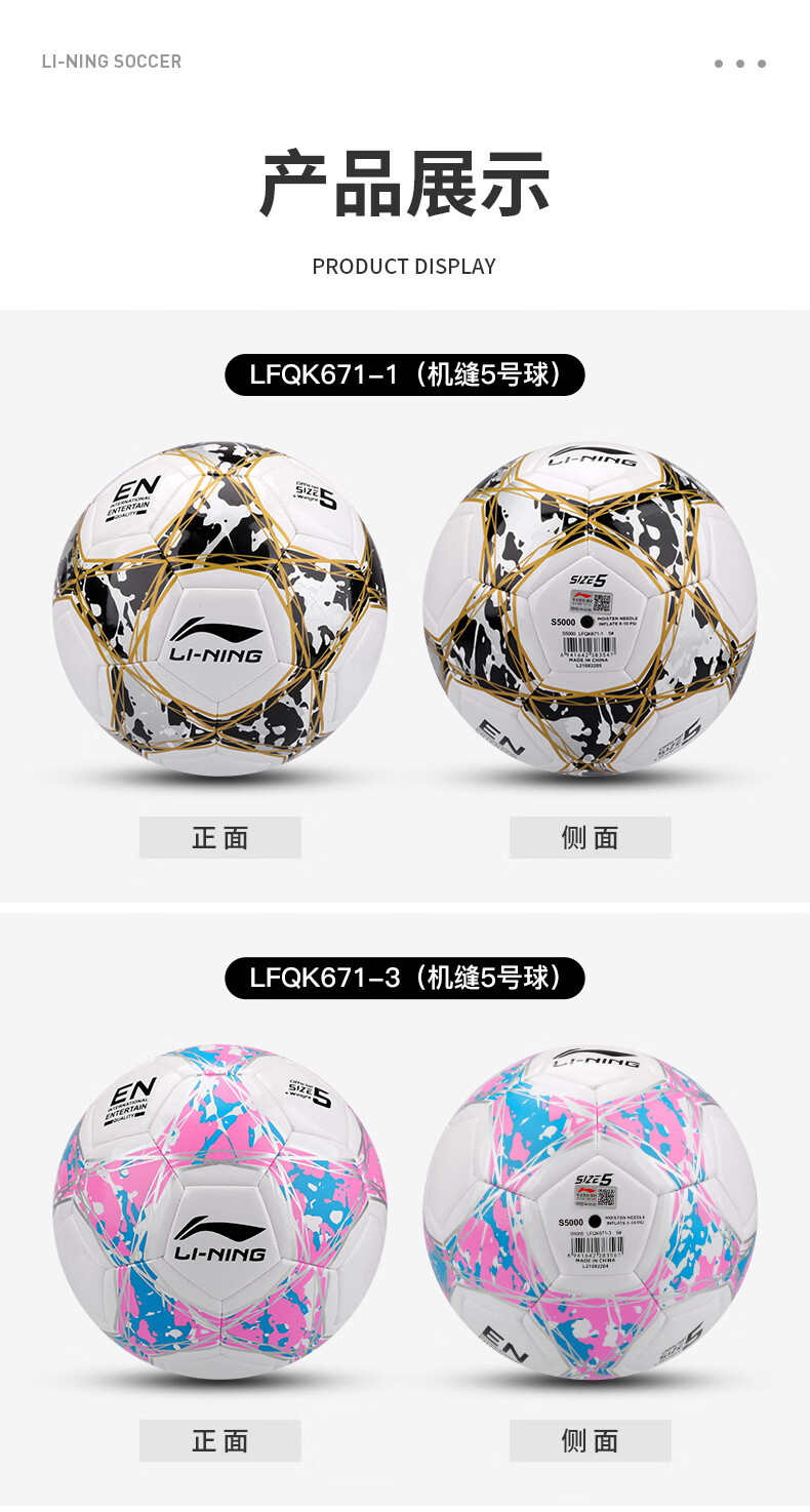 LINING李宁4号足球 训练比赛用球 中考专业标准 儿童青少年学生足球 LFQK673-3粉蓝 防泼水 易清洗 颜值高