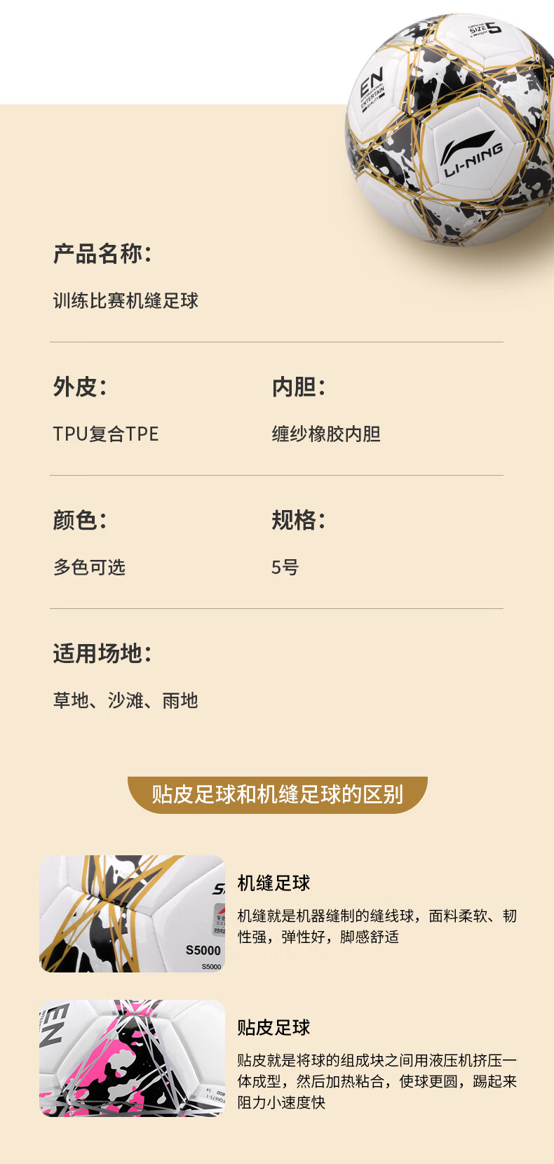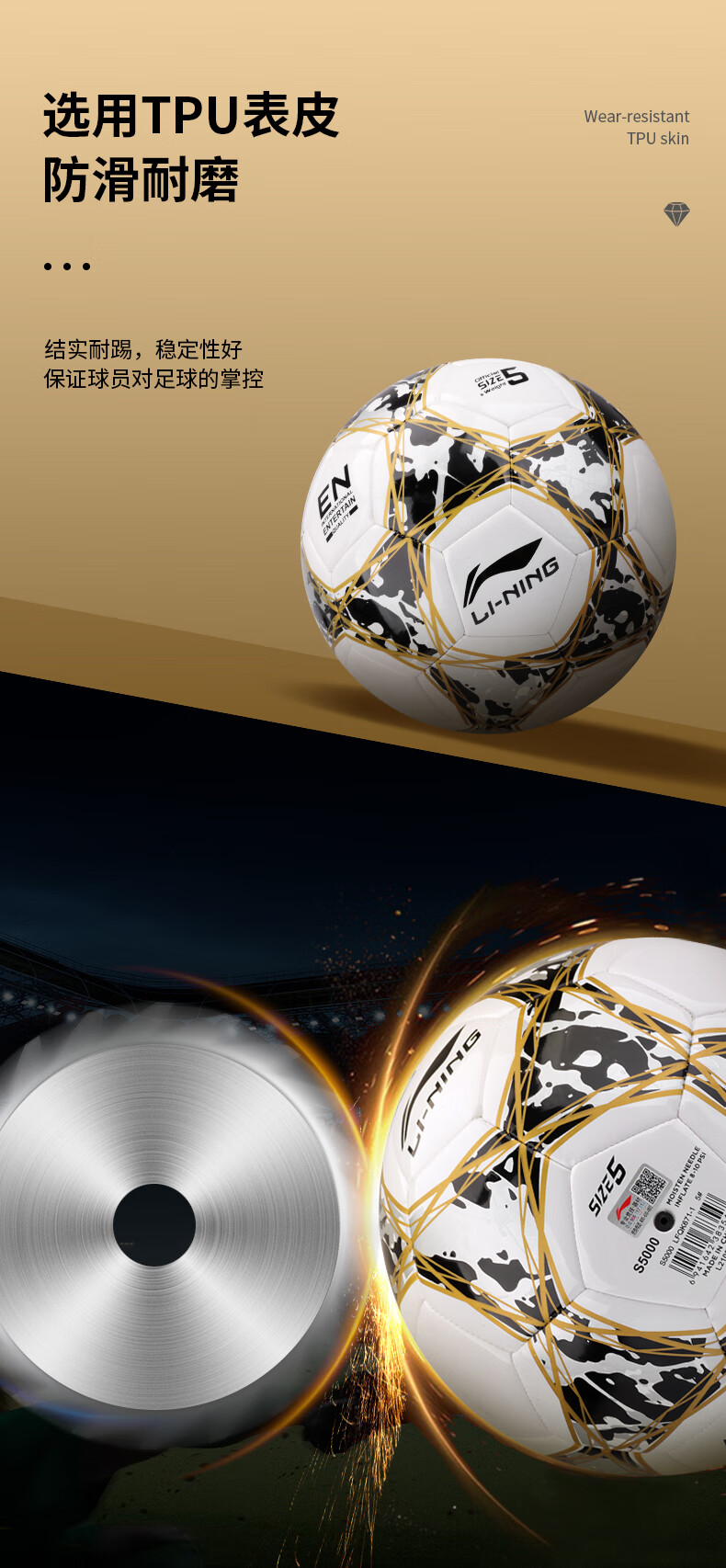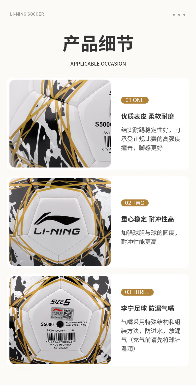 LINING李宁4号足球 训练比赛用球 中考专业标准 儿童青少年学生足球 LFQK673-3粉蓝 防泼水 易清洗 颜值高