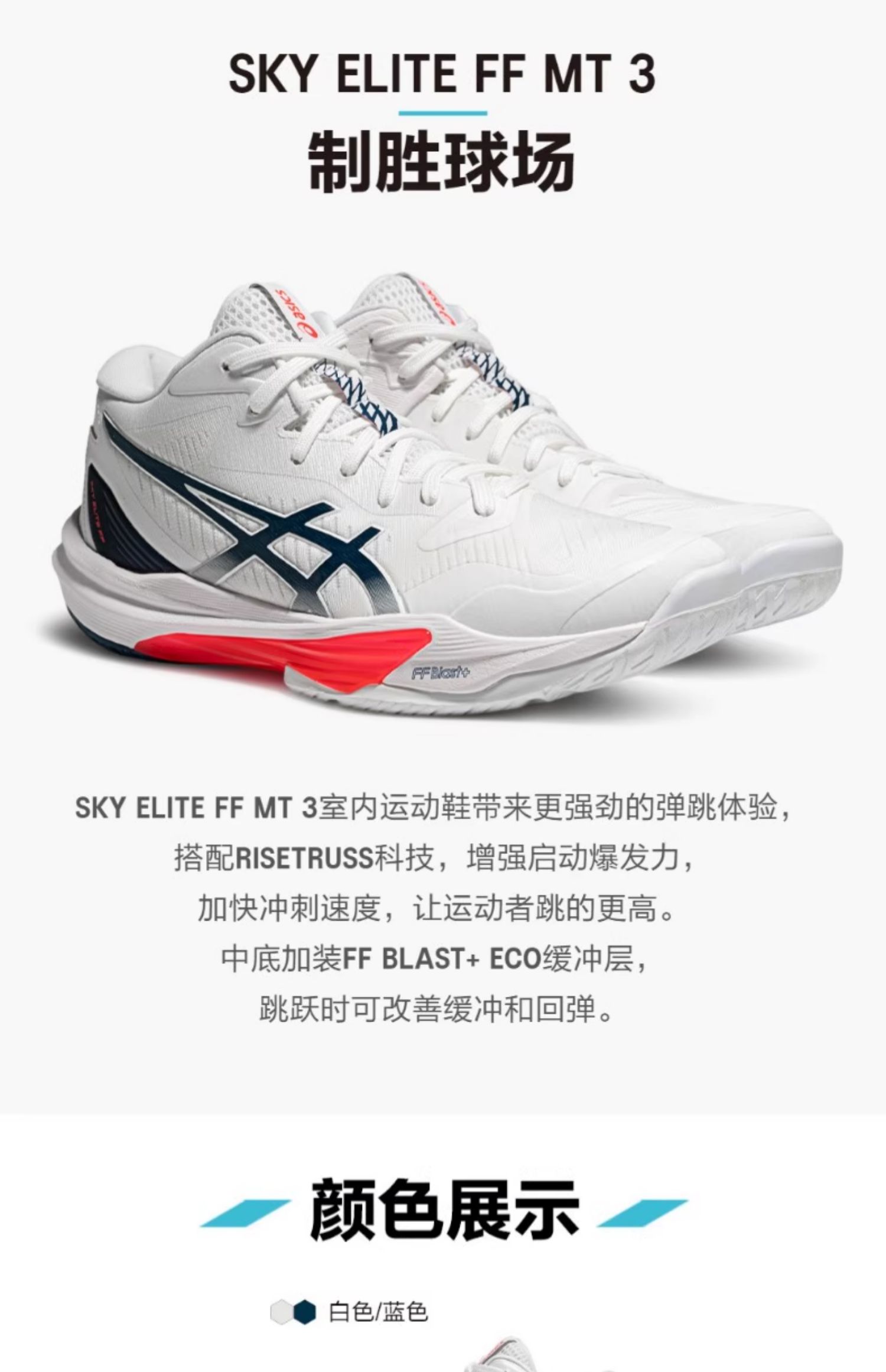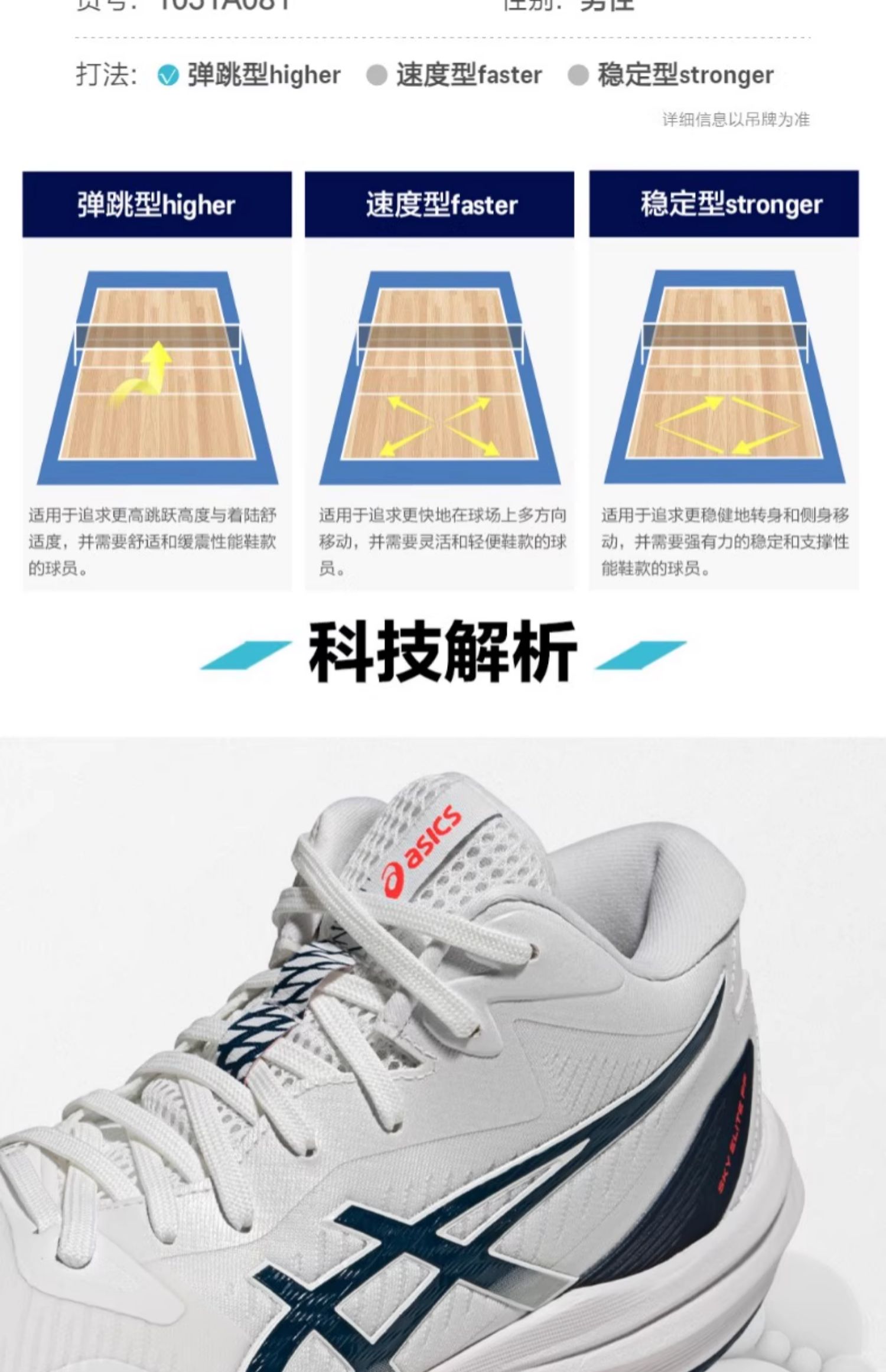 Asics亚瑟士新款排球鞋SKY ELITE FF 低帮排球鞋 1051A080-104 回弹缓震 稳定支撑