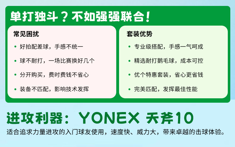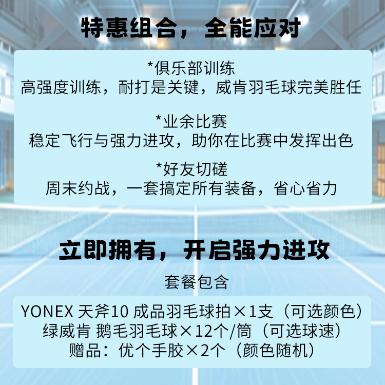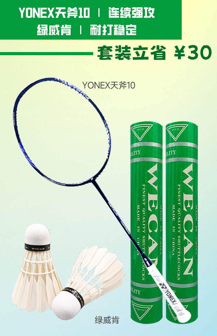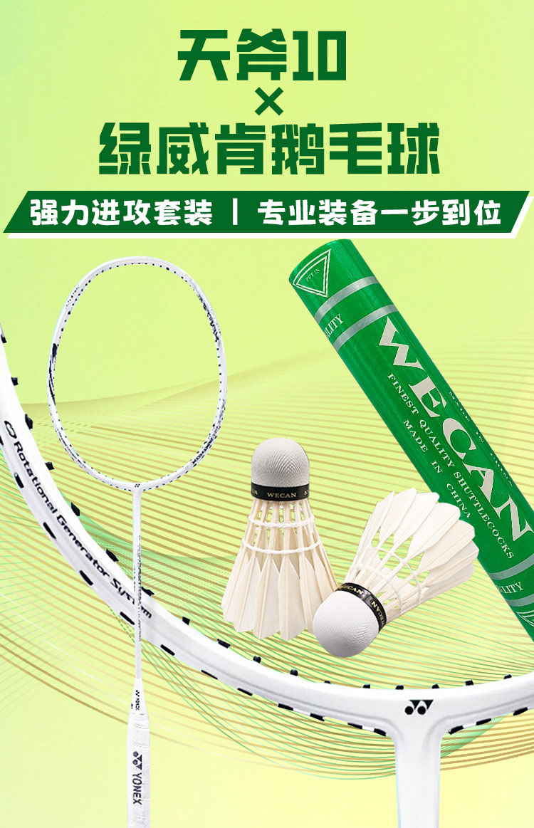 【优个特惠搭配】YONEX天斧10进攻型羽毛球拍+绿威肯耐打鹅毛球 进攻战力拉满 耐打畅打无忧 已拉线成品拍1只+单筒球 暴力进攻与耐打兼备 业余高手省心之选 高性价比一步到位