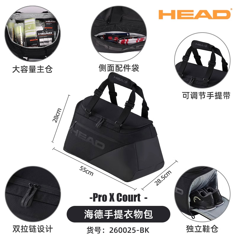 HEAD海德网球包 PRO X系列25新款网球包旅行包球员运动赛场包衣物包 260025 48L 黑色本品参加12.12返场特惠满129减20 299减50 499减80 999减150元大促!