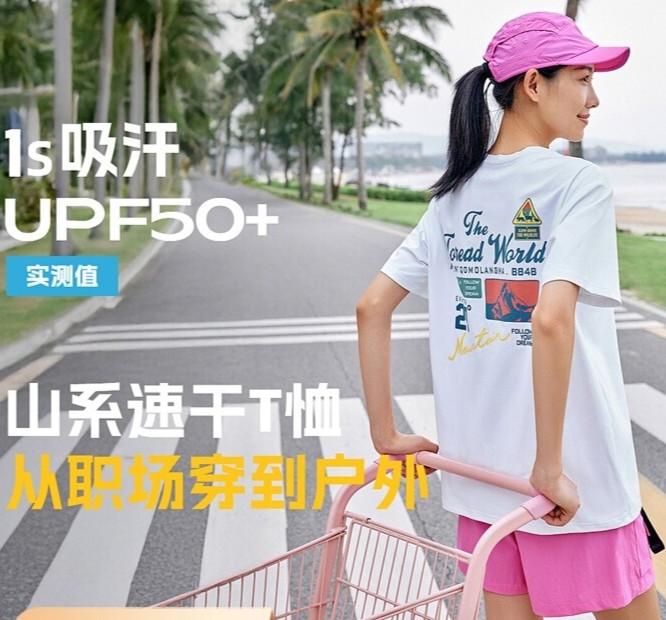 TOREAD探路者 新款短袖 户外徒步防晒UPF50+吸汗速干高弹宽松印花T恤 米色-女款 TAJJBN82758轻盈透气 畅享户外
