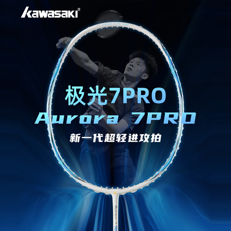 川崎 羽毛球拍 极光7pro 全碳素进攻 超轻高磅 学生新手训练单拍 多色可选 5U超轻进攻型球拍 可拉35磅
