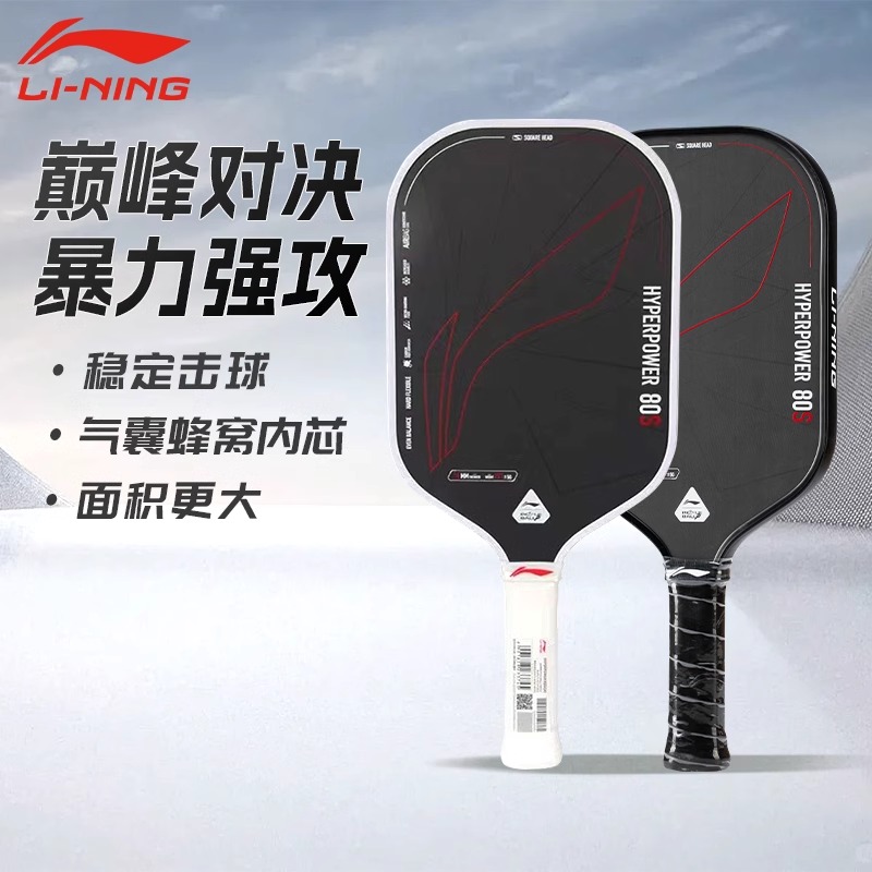 LINING李宁 匹克球拍 HYPERPOWER-80S 高回弹性碳素纤维 专业比赛进攻型匹克球板 Pickle Ball球拍稳定击球,气赛蜂窝内芯,面积更大
