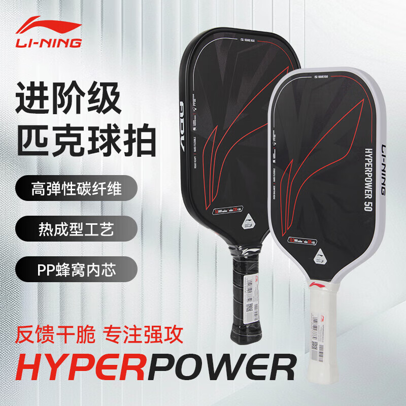 LI-NING李宁 匹克球拍 碳纤维pickleball 玻璃碳纤维初学者力量型 专业匹克球板 HYPERPOWER 50 进阶级力量型匹克球拍,稳定击球,专注进攻!