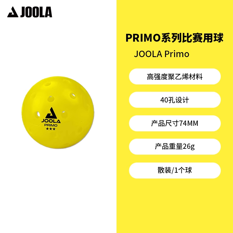 JOOLA优拉匹克球 40孔Primo 3 Star室内外训练比赛专用球(1个散装)18572多场地适用,耐打稳定