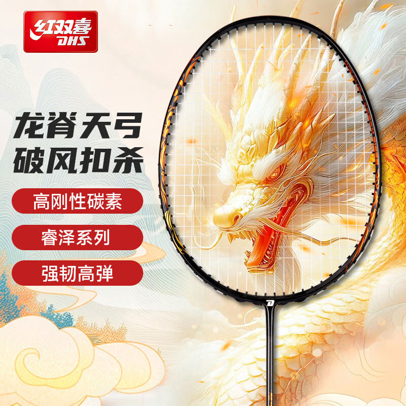 DHS 红双喜 羽毛球拍 全碳素 睿泽系列 超轻耐打 进攻型单拍 初学进阶款 3U4U5U可选破风进攻拍 进阶球友适用