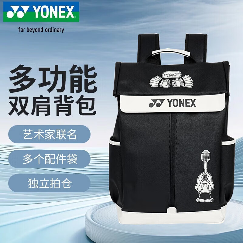 YONEX尤尼克斯羽毛球包 时尚联名款 大容量双肩运动背包 yy便携拍包 BA325CR 黑色艺术家联名 独立拍仓 大容量