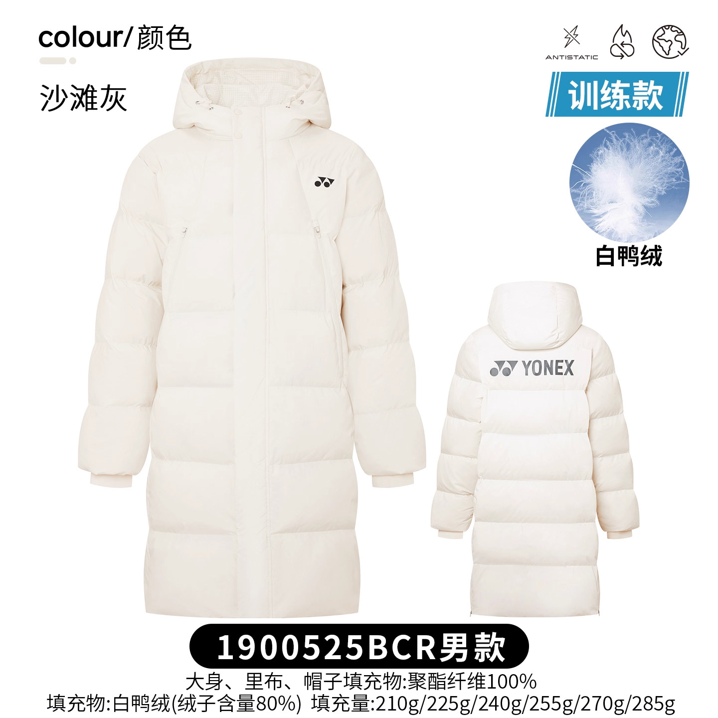 YONEX 尤尼克斯 羽毛球服 羽绒服 秋冬季长款 yy连帽大衣外套 1900525BCR 男款 沙滩灰11.11狂欢购超级秒杀,原价899元,现仅需769元!