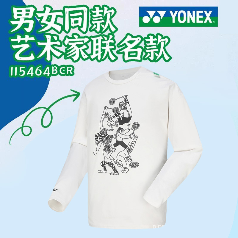 YONEX 尤尼克斯 羽毛球服 男女同款长袖T恤 中性款艺术家联名系列 115464BCR 米白色高弹舒适 运动自如 特惠商品,售完无补!!!