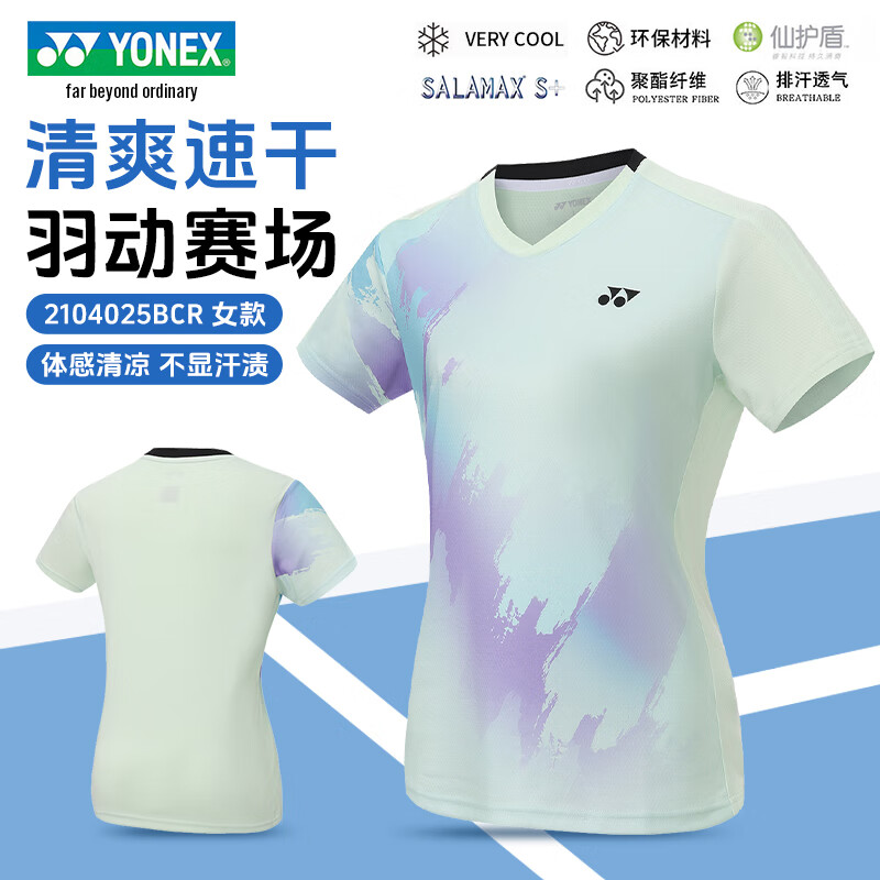 YONEX 尤尼克斯 羽毛球服 女款 圆领短袖T恤 速干透气运动比赛服 215095BCR 浅水绿本品参加11.11狂欢购满129减20 299减50 499减80 699减100 999减150 1299减200元大促!