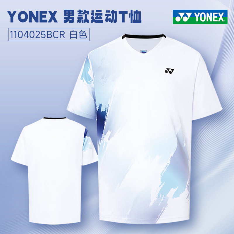 YONEX 尤尼克斯 羽毛球服 男款T恤 运动短袖 透气速干上衣 训练比赛服 1104025BCR 白色轻薄透气 清爽速干