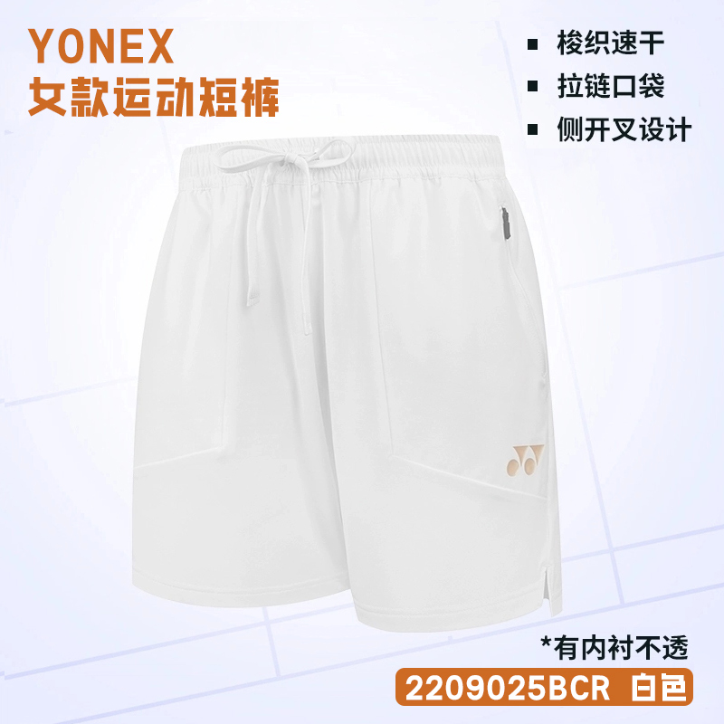 YONEX 尤尼克斯 羽毛球服 女款短裤 yy运动跑步吸汗速干短裤 2209025BCR 白色本品参加11.11狂欢购满129减20 299减50 499减80 699减100 999减150 1299减200元大促!