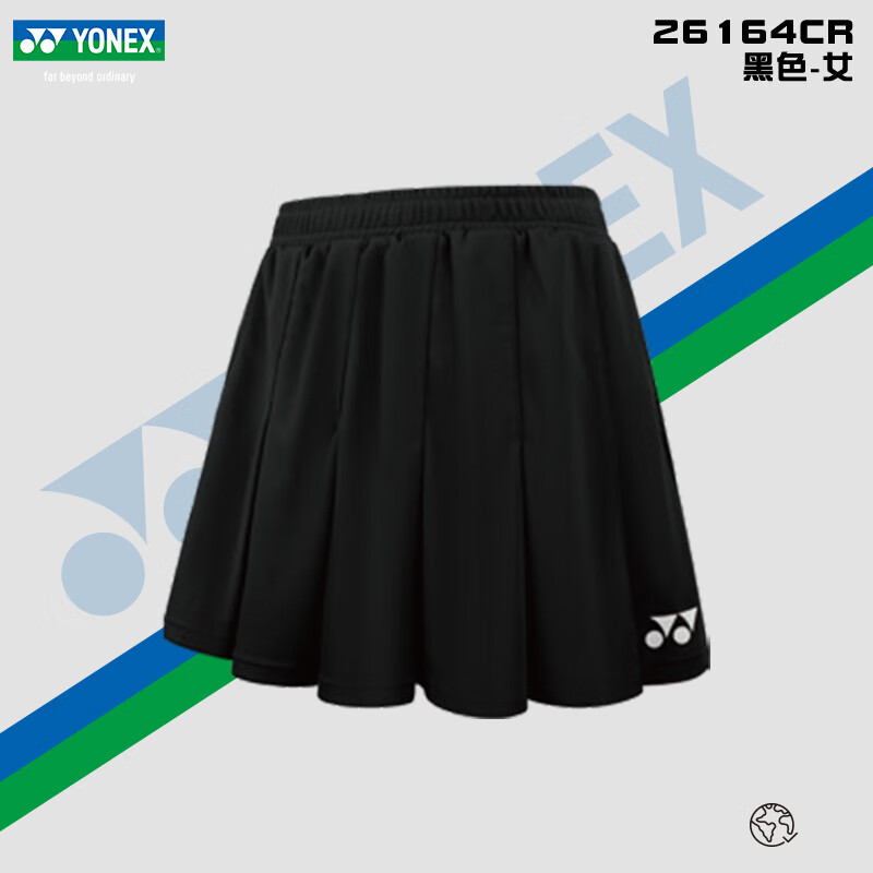 YONEX 尤尼克斯 羽毛球服 女款运动短裙 速干裙裤 国羽球迷款 26164CR 黑色速干透气 舒适干爽