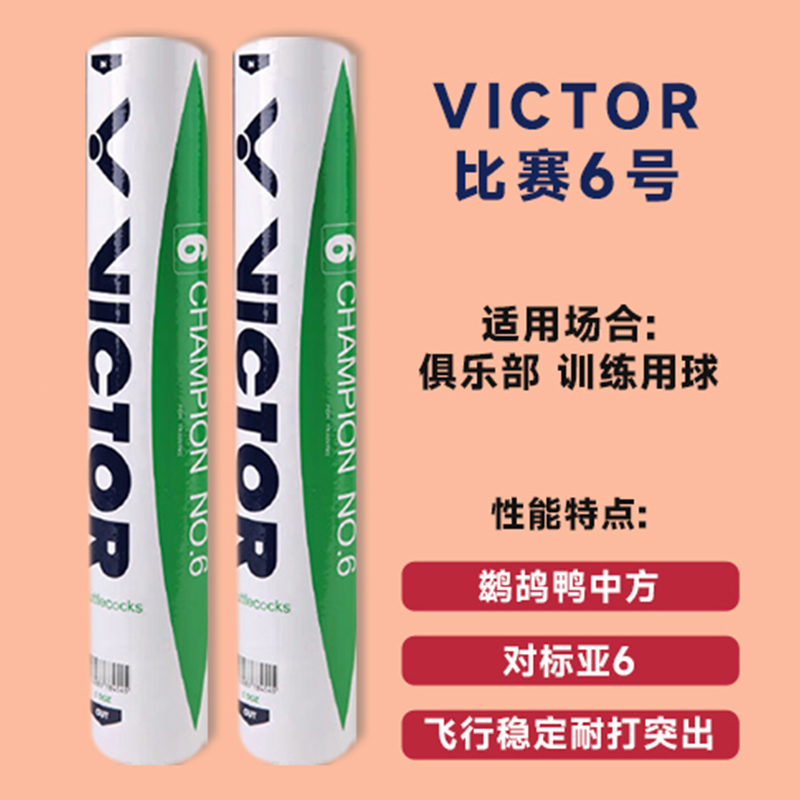 胜利VICTOR羽毛球拍 比赛6号(CP6) 鸭毛球,稳定耐打,12只/筒中方鸭毛球,性能完全不逊色RSL NO6。