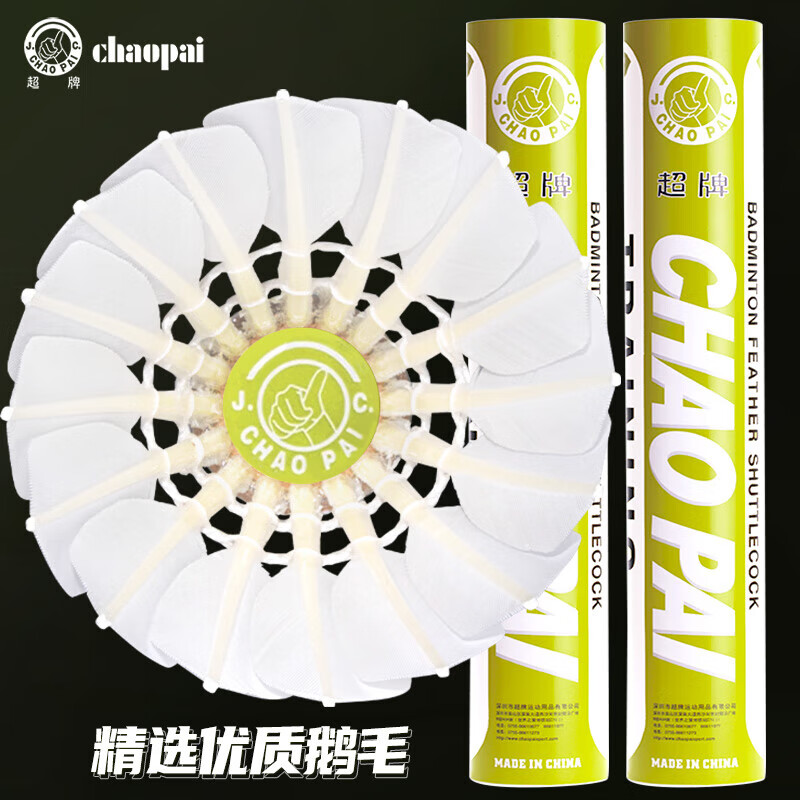 超牌 羽毛球 浅绿超 鹅毛球 12只装 单筒 训练业余比赛用羽球 浅绿 76速 77速训练级羽毛球 耐打鹅毛球