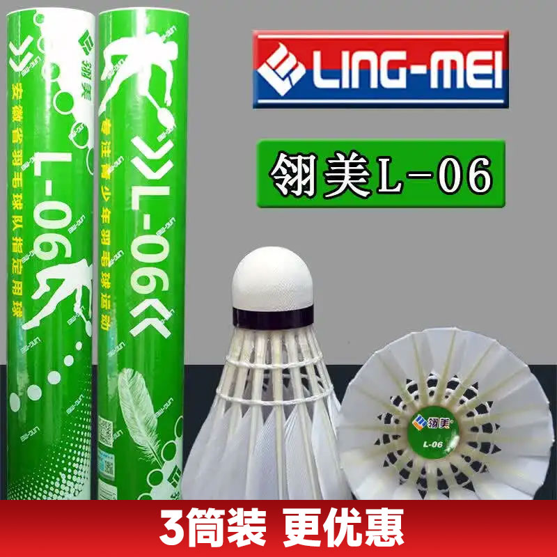 翎美羽毛球耐打L-06羽球 12只/筒 3筒组合装 (一级鹚鸪鸭小方毛片,高级训练用球)3筒装 更优惠