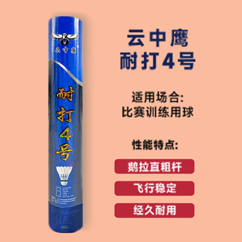 【95元单筒包邮】云中鹰 羽毛球 耐打4号 高弹力室内外用球 鹅拉直粗杆 比赛训练用球 12只/筒飞行稳定 经久耐用