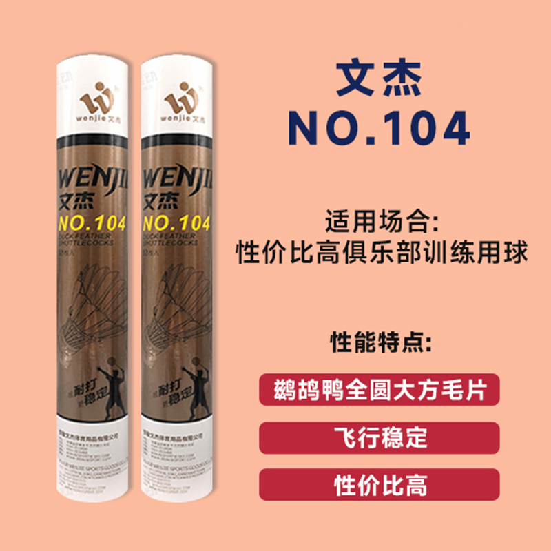 文杰 羽毛球 NO.104 飞行稳定比赛训练用球 鹚鸪鸭毛系列 文杰104 12只/筒鹚鸪鸭全圆大方毛片,飞行稳定,性价比高