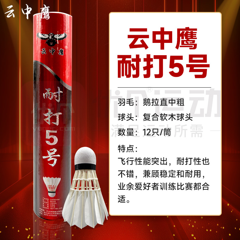 云中鹰 羽毛球 耐打5号 高弹力室内外用球 鹅拉直中粗 比赛训练用球 12只/筒飞行稳定 落点精准 专业耐打
