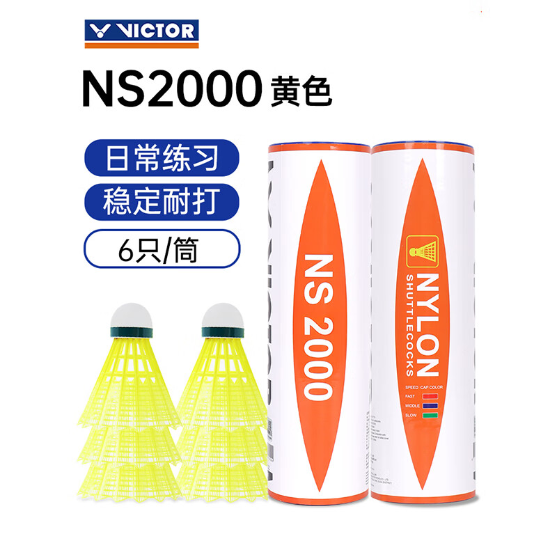 VICTOR胜利威克多NS2000尼龙球 超级耐打训练羽毛球户外娱乐抗风稳定 中速6只装NYLON2000(好打,耐打,实惠) 超耐打训练用羽毛球省钱好用