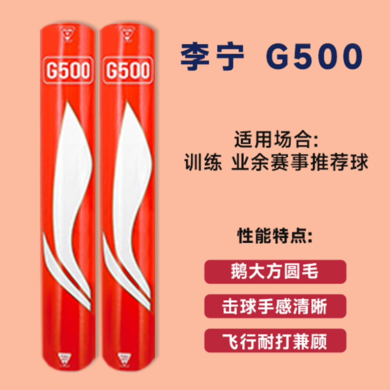 李宁羽毛球 G500鹅毛羽片训练比赛球 复合软木飞行稳定耐打 毛杆比较粗,耐打度不错,球毛介于大方和全圆之间,是一款深受好评的鹅毛球