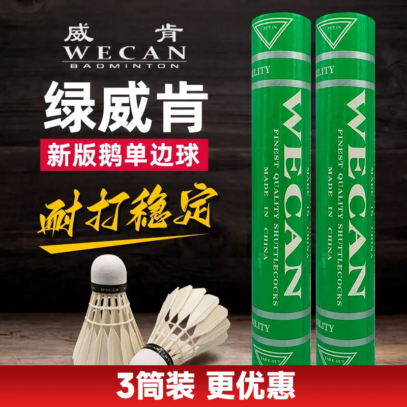 Wecan威肯 羽毛球 绿威肯 新升级鹅毛球 专业比赛训练用球 耐打稳定性价比高 12只/筒 3筒装3筒组合装,性价比更高