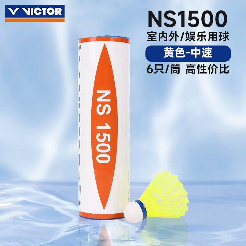 VICTOR 威克多 羽毛球 尼龙球 塑料球训练球 室内室外可用 NS1500 黄色中速 6只/筒耐打防风 飞行稳定