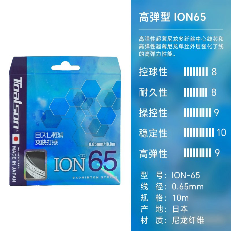 Toalson杜力臣 羽毛球拍线 高弹 声音爽脆 高弹线音爽线ION65日本羽毛球协会推荐 弹力耐用兼备
