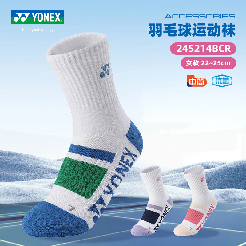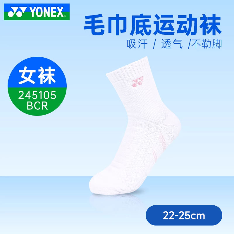 YONEX 尤尼克斯 YY羽毛球袜 女款运动袜 加厚毛巾底 245045BCR 22-25cm加厚毛巾底 耐磨舒适透气