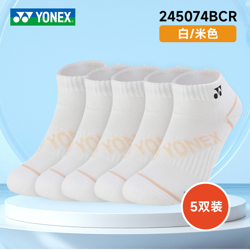 YONEX 尤尼克斯 羽毛球袜 女款运动袜 短筒 女士袜子 245074BCR 白/米色 22-25CM 5双装可平时穿 柔软 耐磨防滑 穿着舒适