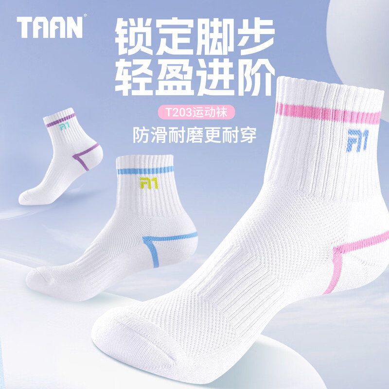 泰昂TAAN羽毛球袜 女款 T203运动袜 中筒棉袜 加厚毛巾底 吸湿排汗 柔软舒适 三色可选本品参加新春开练满129减20 299减50 499减80 999减120元大促!