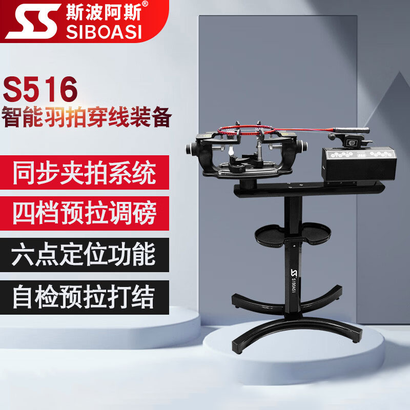 斯波阿斯 S516 羽毛球拍拉线机 穿线机 电脑自动缠线机器 羽拍专用 黑色同步夹拍系统 四档预拉调磅 六点定位功能 自检预拉打结