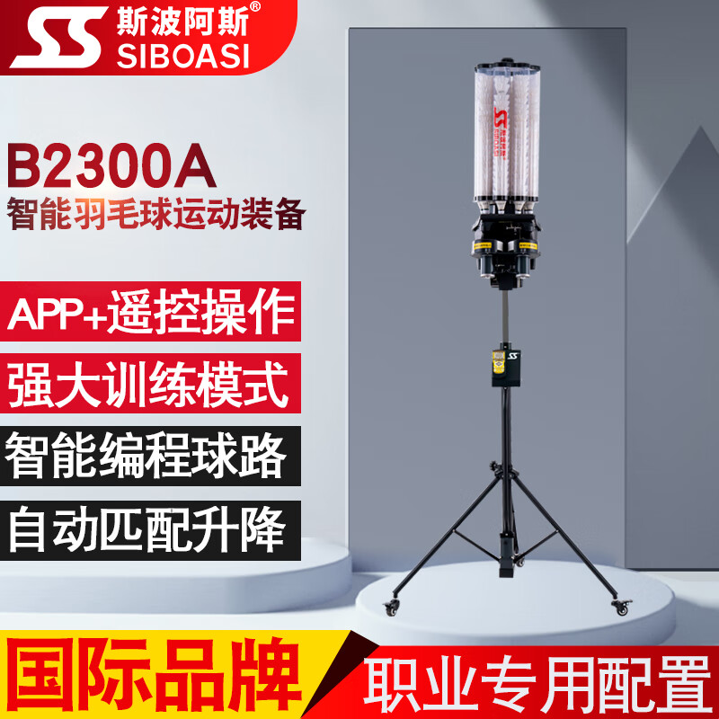 SIBOASI 斯波阿斯 B2300A 羽毛球发球机 训练练习陪练器 电脑操作培训喂球机 黑色4种交叉球练习,200粒大容量装球