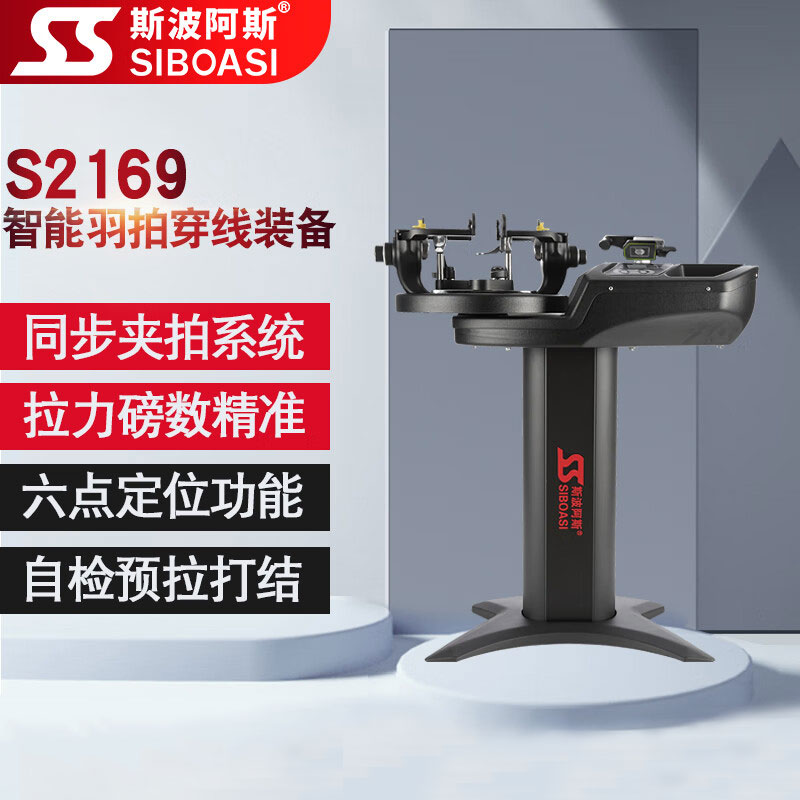 斯波阿斯 S2169 羽毛球拍拉线机 穿线机 电脑自动缠线机器 羽拍专用 黑色同步夹拍系统 拉力磅数精准 六点定位功能 自检预拉打结