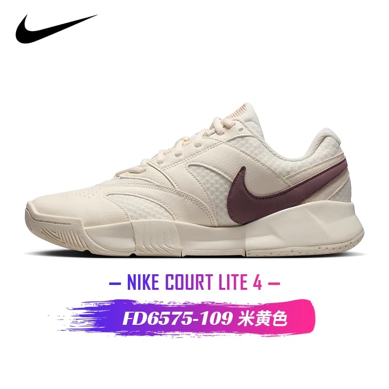 Nike耐克网球鞋 女子新款COURT LITE 4专业舒适网球运动鞋 FD6575-109 米黄色舒适耐磨,简约时尚