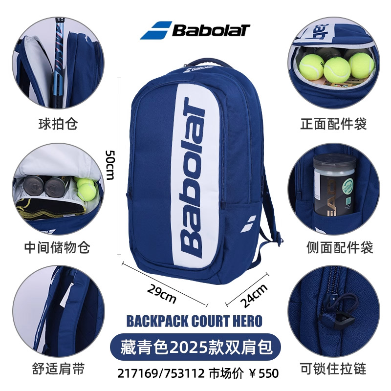 Babolat百保力网球包 EVO系列25新款舒适多功能大容量网球包 双肩包 753112 藏青色本品参加11.11狂欢购满129减20 299减50 499减80 699减100 999减150 1299减200元大促!