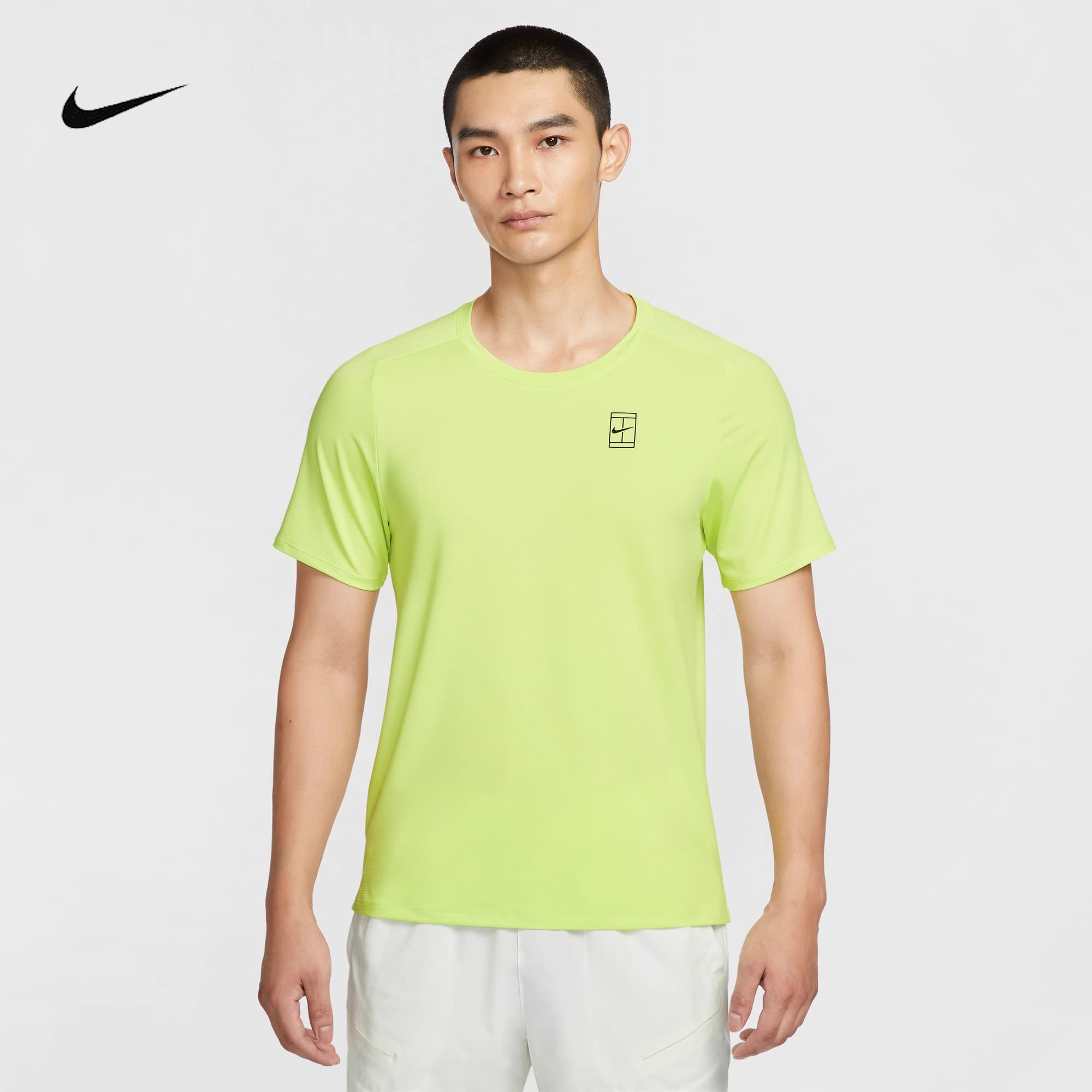 Nike耐克网球服 透气轻薄圆领上衣短袖T恤快干运动短袖 FZ6911-736 柠檬黄柔软舒适 吸汗透气,助你运动自如!