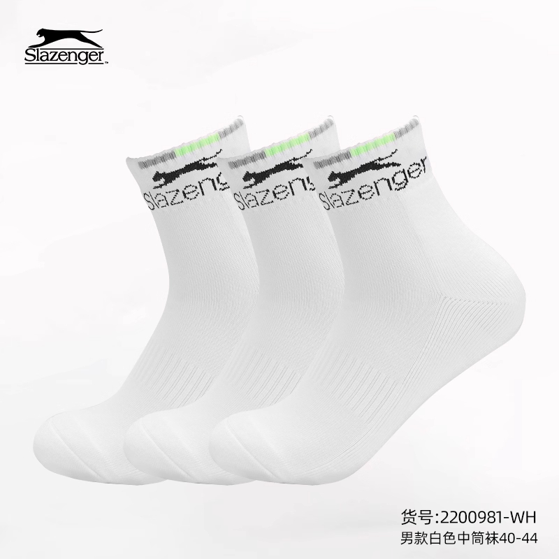 Slazenger史莱辛格网球袜 中筒袜男女透气吸汗排汗网球羽毛球跑步运动袜 STA2200981 白色三双装优质长绒棉,更细纤维,提升舒适度加固后跟和足尖,经久耐穿