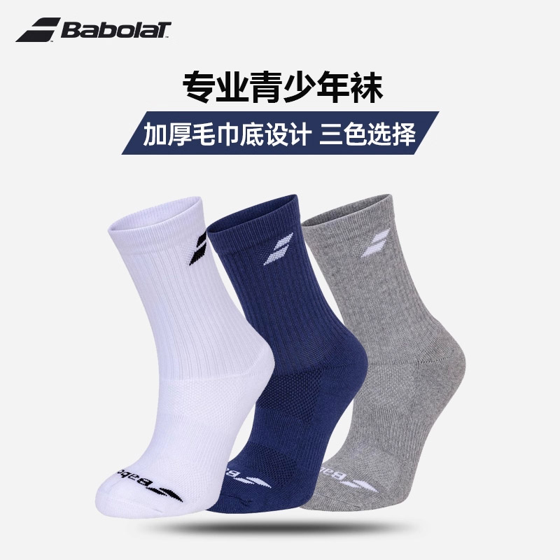 Babolat百保力网球袜 运动网球袜青少年男女加厚吸汗透气毛巾袜3双装中筒袜子 5JB1371 三色可选本品参加11.11狂欢购满129减20 299减50 499减80 699减100 999减150 1299减200元大促!