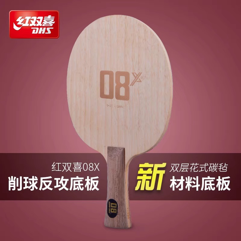 DHS红双喜 乒乓球底板 08X 乒乓球拍 5木+2C碳素削球型底板 大板面