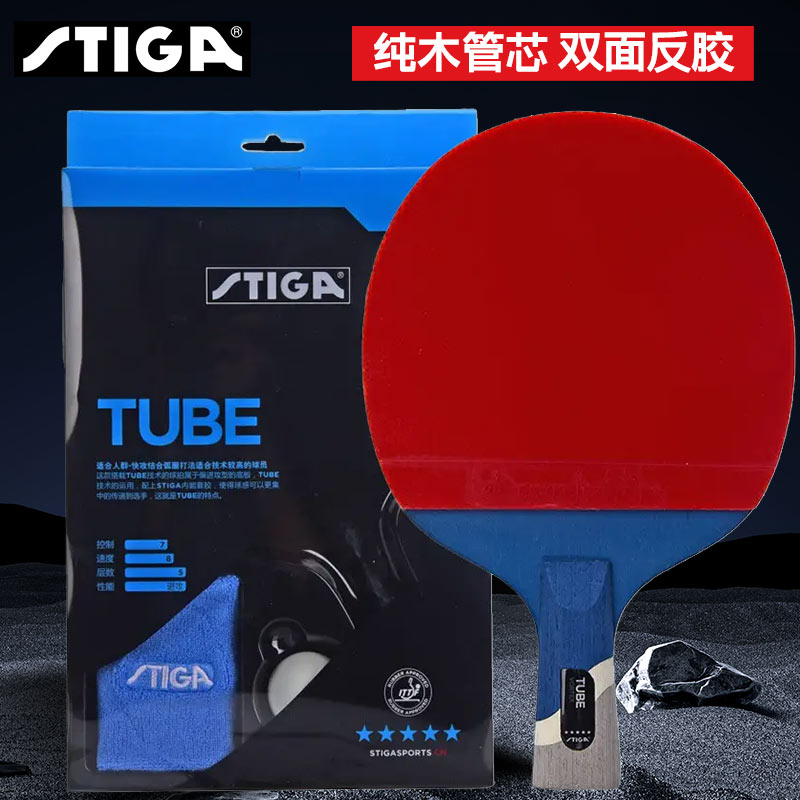 STIGA斯帝卡 乒乓球拍 横拍直拍 五星5星单只全拍套 双面反胶进攻型 纯木底板 TUBE 5星成品拍省专业队使用套胶 高速旋转 出球迅速 吃球稳定