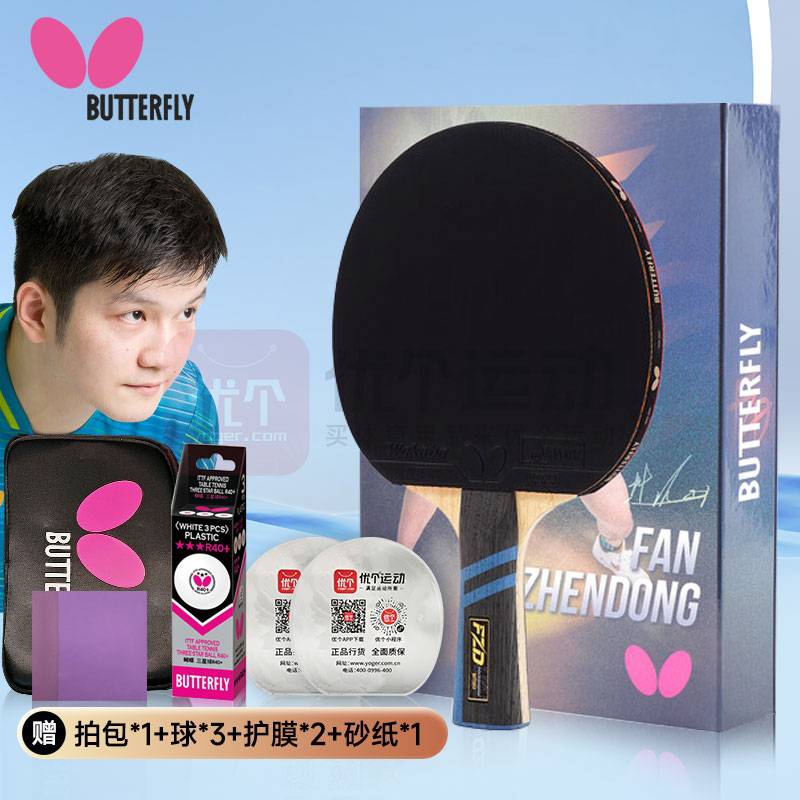 Butterfly蝴蝶 乒乓球成品拍冠军用拍经典款 日本进口蝴蝶胶皮 5木2碳底板 张继科经典礼盒日本进口套胶 芳碳底板