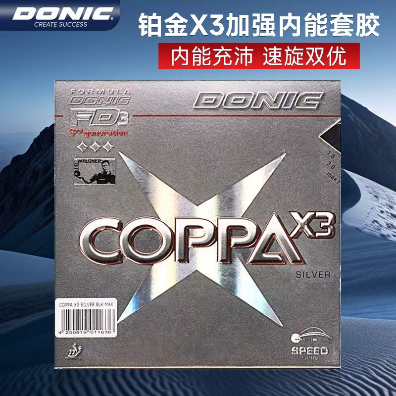 DONIC多尼克 COPPA X3 PLATIN 铂金X3加强 12089内能套胶适合以力量为主的全面型球手。旋转,推挡,撞击的技术都能全面发挥